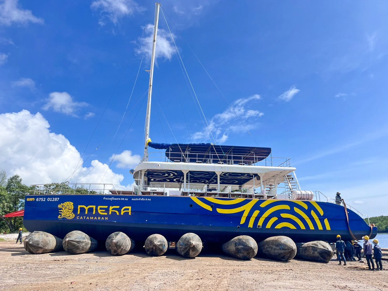 เรือ MEKA CATAMARAN โครงสร้างเรือประเภทของเรือ ไฟเบอร์กลาสParty Boat Vessel Services Hard Blasting Painting and Refinishing Engine Repair Propeller Engine Overhaul Gallery View fullsize View fullsize View fullsize View fullsize